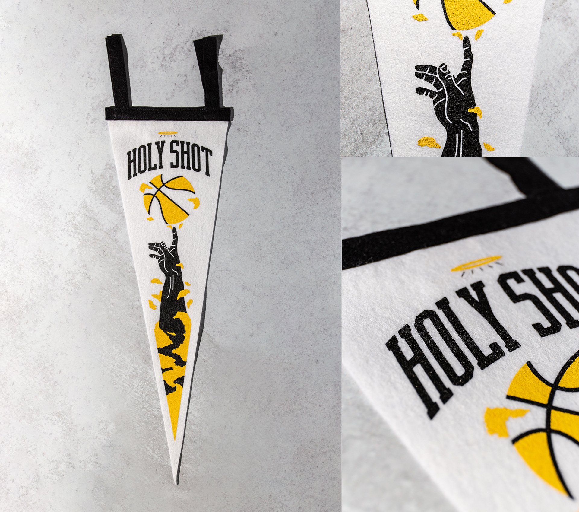 The Holy Shot is a place where my faith, design and basketball meet. A small shop where I design everything from stickers, pins and pennants. It's a place where I can create freely.